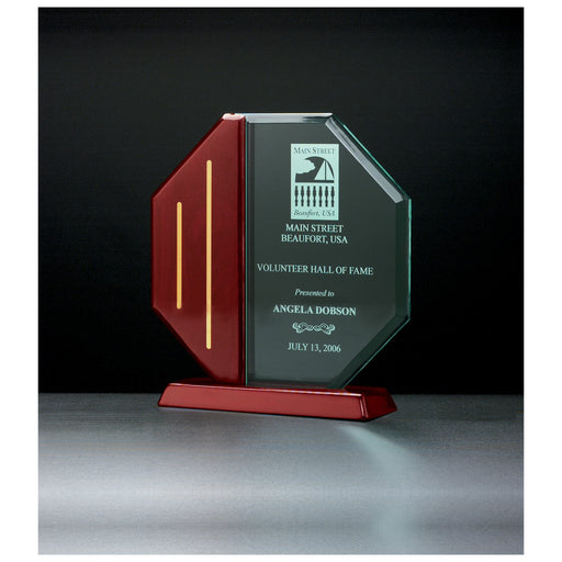 Crystals Buy9 1/4" x 9 5/8" Octagon Series Acrylic Rosewood Piano Finish Base and Post with Gold Metal Accents Material : Acrylic / Rosewood / Jade Glass Dim...