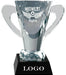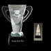 This Premier Crystal Cup is handmade and vary slightly in size. Clear optic crystal with gold handles is attached to the black marble base. Packaged individually in a lined gift box. Make this crystal award the perfect showpiece to honor excellence and appreciation!