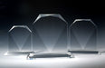 The Encased Diamond Crystal Award - small comes in large, medium, and small sizes. Has the following dimensions: 7" x 7" x 2-3/4". It is made of Crystal and weighs 5.06 lbs (includes packaging). It includes a Blue Velvet Gift Box.