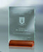 This modern, sleek, and professionally finished Glass Plaque with Wood Base - Large would be the perfect item for any awards ceremony. This item comes in small, medium, or large (this is a Large). Glass Plaque with Wood Base - Large has the following dimensions: 8" x 6" x 1/2" and is made of Glass. Includes Wood Base. The weight of the item is 5.000 lbs (including packaging). The pricing includes engraving pricing.