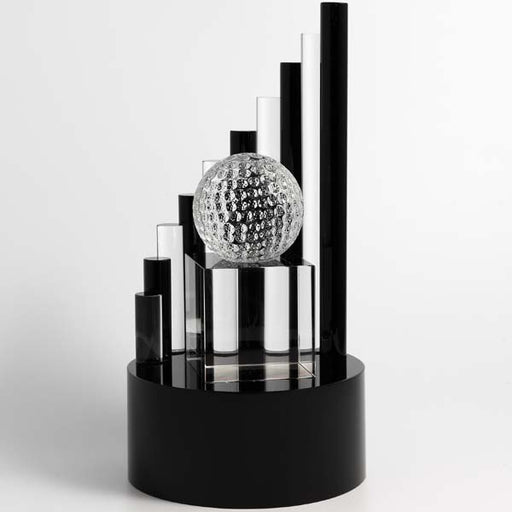 11" Crystal Golf Ball on Facet Column With Black Crystal Bass