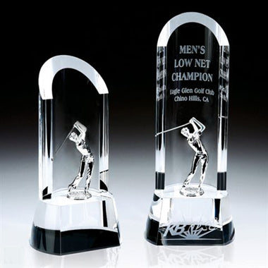 Unique shape half moon crystal golfer award,This item is large size,small size showed below.