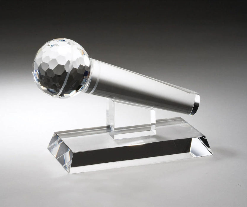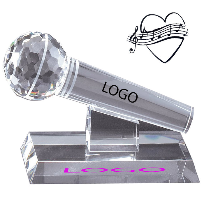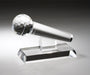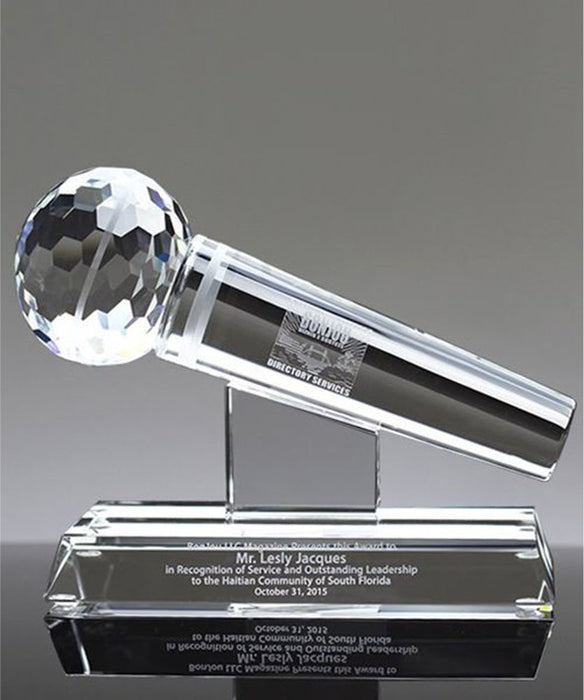crystal microphone comes mounted to a clear crystal base, perfect for presenting to a  speaker, singer, broadcaster,  announcer, or master of ceremonies.