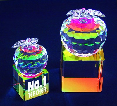 This Apple Crystal Ornament with Rainbow Base illuminates your desk with its optical colors. Apple and Base are shipped unattached. Clear Crystal Apple with Rainbow Base.