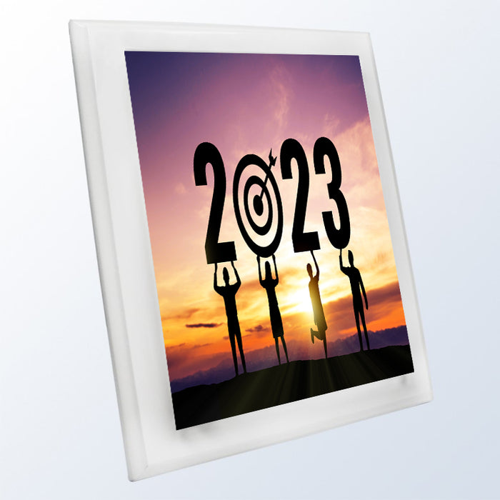 The Arch Crystal Award has the following dimensions: 4" x 3-1/8" x 1-5/8". It is made of Crystal and weighs 2.1lbs (includes packaging). It includes a Blue Velvet Gift Box.