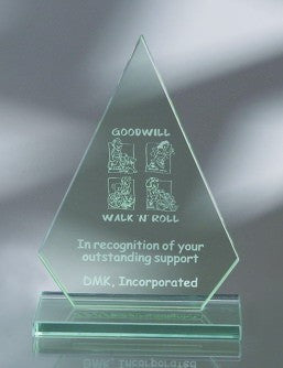 This priceless, beautiful, and professionally finished Glass Conquest Award, Flat Edge - Large would be the perfect award at any awards ceremony. This item comes in a small, medium, or large (this is an Large). Glass Conquest, Flat Edge - Large has the following dimensions: 9 1/2" x 6 3/4" x 1/2" and is made of Glass. It includes a Base. Pricing includes engraving price. The weight of this item is 12.000 lbs (including packaging).