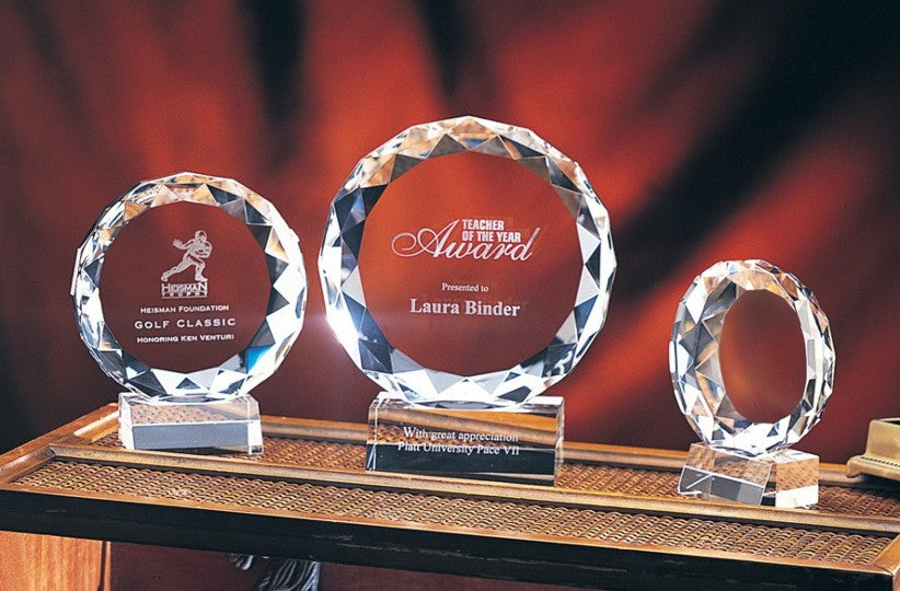 Diamond faceted cut round trophy for champion, silver medal or 3rd place