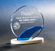 Multi color, green/blue accent wave crystal award for outstanding service and team workers