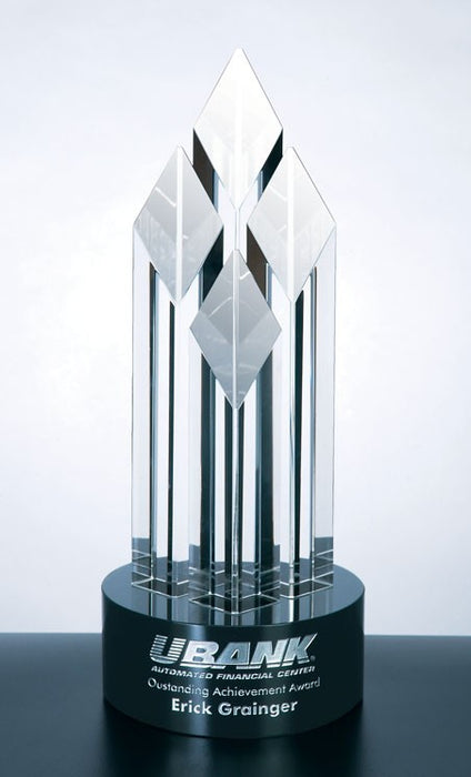 Executive Diamond Optical Crystal Award with Black Round Crystal Base - Medium