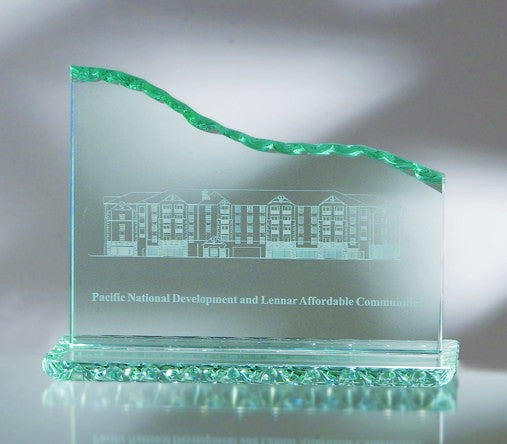 Horizontal Wave Jade Glass Award with Pearl Edge - Small