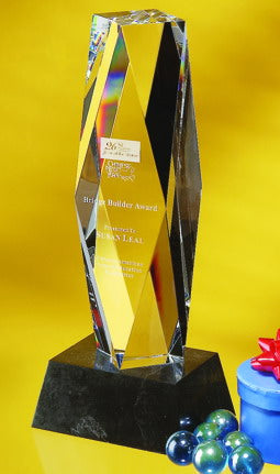 This wonderfully sleek, modern, and artfully crafted Crystal Monarch Award - Small would be a great award to hand out at awards ceremonies. This item comes in a small, medium, or a large (this is a small). Crystal Monarch Award - Small has the following dimensions: 8" x 2 3/4" x 2 3/4" and is made of Crystal. It includes a Rec. M. Base: MBTB07. Also comes with a complimentary Blue Velvet Gift Box. The pricing includes the engraving price. This item weights 5.600 lbs (including packaging).