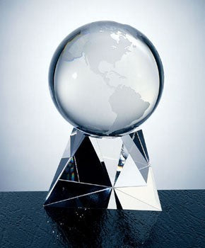 Optical Crystal World Globe Award with Tri Base -Small. Great for use as an award or paperweight.