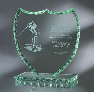Shield Jade Glass Award with Pearl Edge - Large