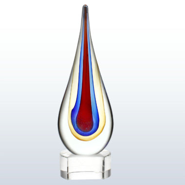 Teardrop Designer Art Glass Award is individually hand crafted blown glass. Shape, color, and dimensions will vary slightly in each pieces, bubbles are inherent to art glass blowing process. **Minor bubbles and swirls inherent to mouth-blown art glass, and slight variation in design pattern. Available sizes: Large and Small.