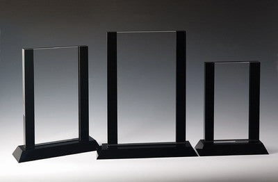 Vertical Panel Black Siding Crystal Award - Medium has a clean and simple look. Comes in large, medium and small. Has the following dimensions: 9" x 7-1/8" x 2-3/8". It is made of Crystal and weighs 5.3 lbs (includes packaging). It includes a Blue Velvet Gift Box.